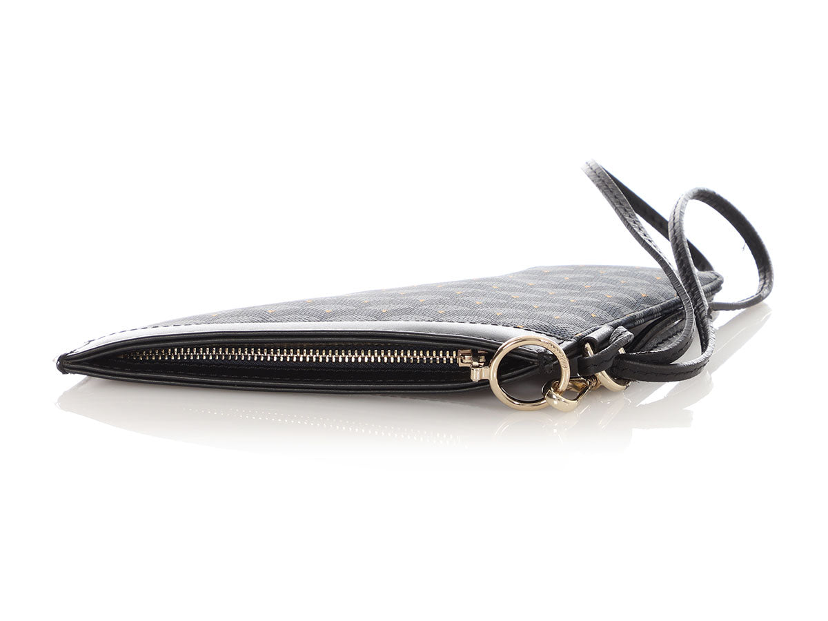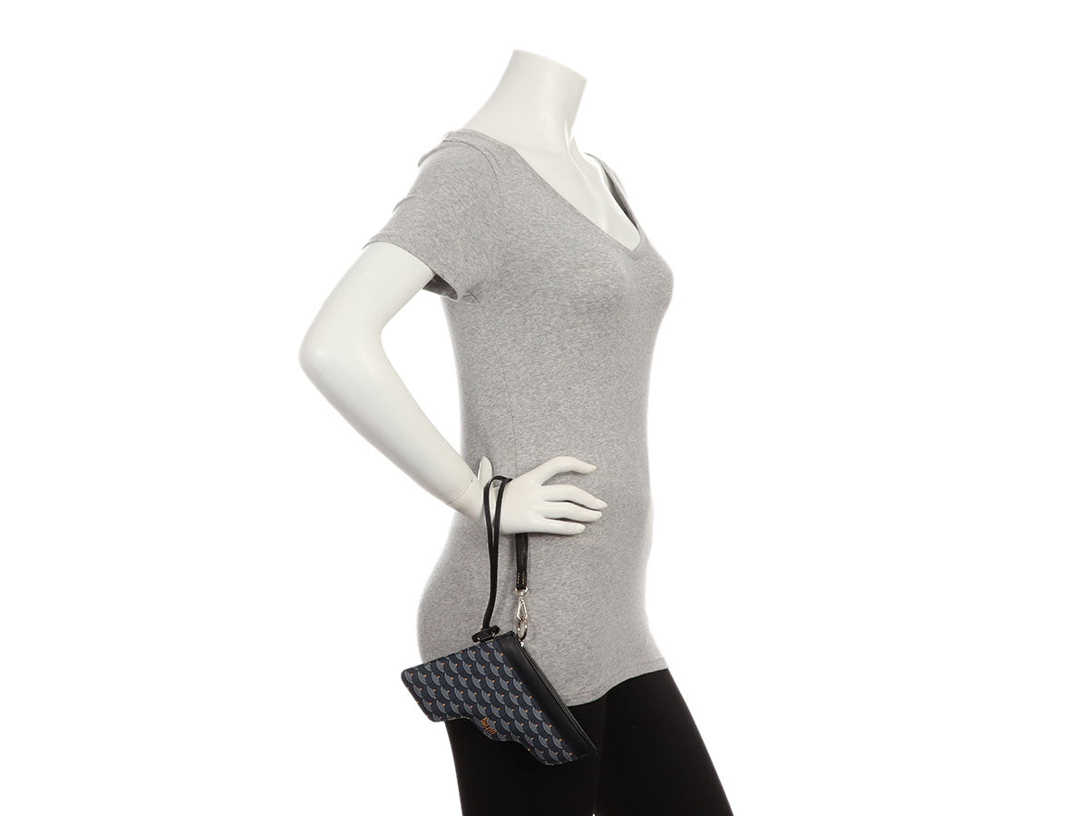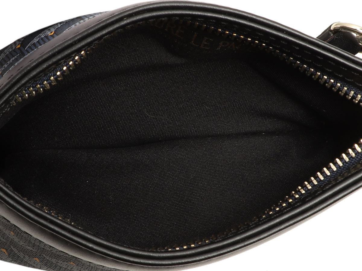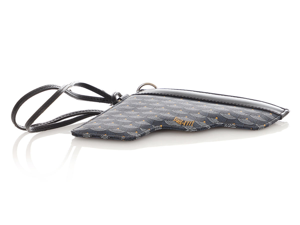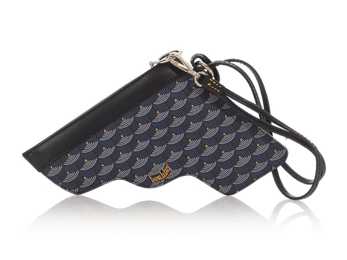 You’re locked and loaded with style when you’re carrying Faure Le Page’s Gun en Toile18 Calibre Pochette! This pouch is made of blue canvas shaped like a gun, while the trim and 14-inch leash are black leather. A silver zipper opens to black fabric lining inside. In very good condition with a dustbag, the edges of the leash are rubbed and peeling, the heat stamp on the inside is rubbing off and it has a slight perfume smell. It’s a fun look that packs some heat!