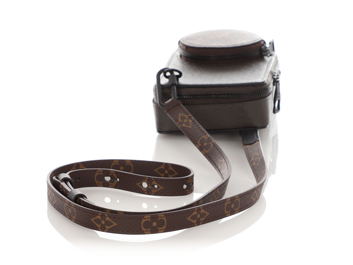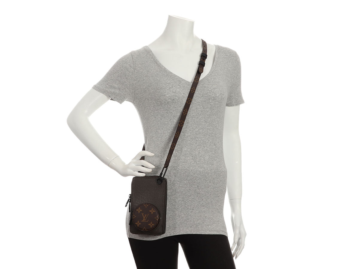 When all you need is your mobile and a few essentials, Louis Vuitton’s Monogram and Taiga Phone Box is at your service! Made of thick, grained dark-brown Taiga leather with brown monogram canvas details and blackened hardware, it features a round monogram Zippy coin purse on the front and a handy slide pocket on the back. Beneath the adjustable, detachable canvas strap shown with a 22.75-inch drop, double zippers secure the top, opening to matching leather and fabric lining with three card slots and one slide pocket. Brand new with a dustbag, this fab piece is no longer available in stores, making it a must-have for collectors and minimalists alike!