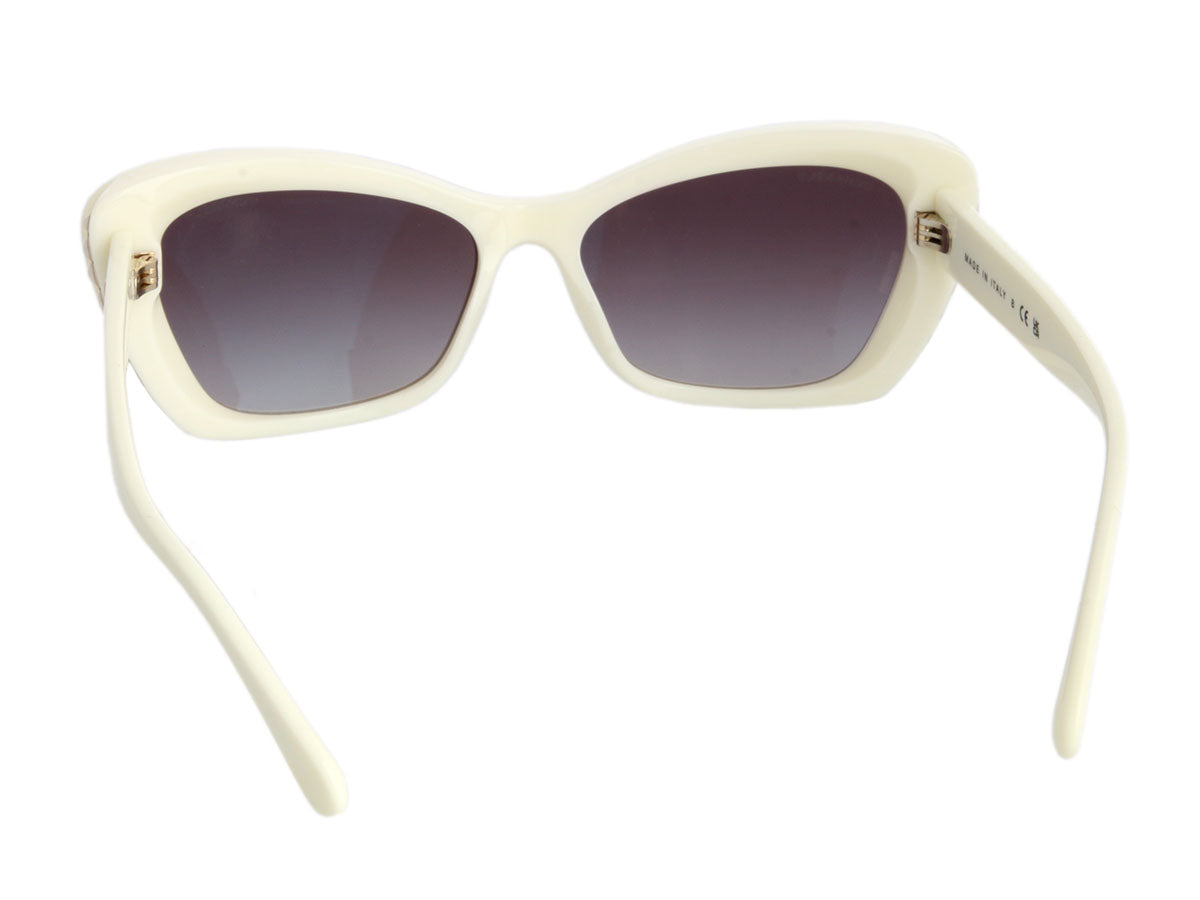 Chanel’s White Pearl Cat Eye Sunglasses have a cool retro feel! Made of slightly off-white plastic with dark gray graduated lenses, they have faux pearls inlaid on the sides of the frames and gold CCs on the arms. New and never worn with a box, case and cloth, they look like the sunglasses that came with the original Barbie, and you’ll feel like a doll when you wear them!