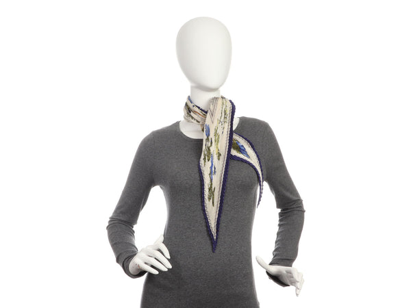 Hermès’ Le Chat Carre Scarf is a fabulous feline fable! Made of 100% silk in a colorway rose, mauve, and multicolor, it depicts a tale of a cat that fell asleep in his mistress’s scarf box and awoke flattened but now able to fly with his friend the flying squirrel. New and never worn with a box and the tag attached, it’s a Florence Manlik design that will take you on flights of fancy!