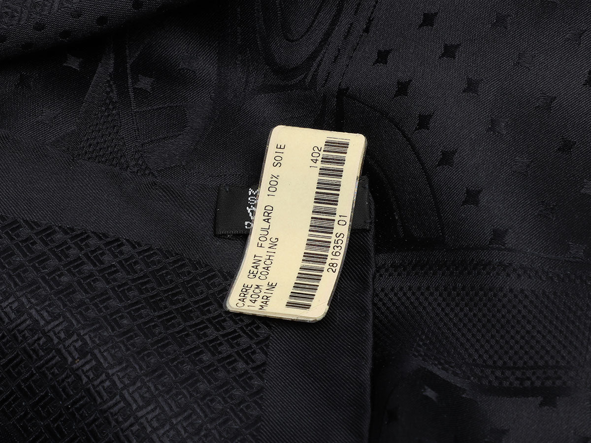 Hermès’ Marine Coaching Giant Silk Scarf is subtle and sophisticated! Made of 100% silk in a dark marine that almost looks black, it has the Coaching motif woven in, depicting different elements used for harnessing a horse. New and never worn with a box and the tag attached, it’s a Julie Abadie design that tells a tale of Hermès’ equestrian heritage!