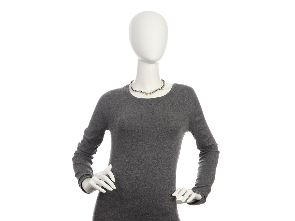 David Yurman’s Two-Tone Diamond Wheat Necklace is a classic DY look that can be worn alone or with an enhancer! The sterling silver wheat chain measures 8 millimeters wide and the bases of the 18K yellow gold end pieces are studded with 1 total carat of white pavé diamonds. In very good condition with a box and pouch, it has marks on the metal. This lovely bit of neck candy has a nice weight to it!