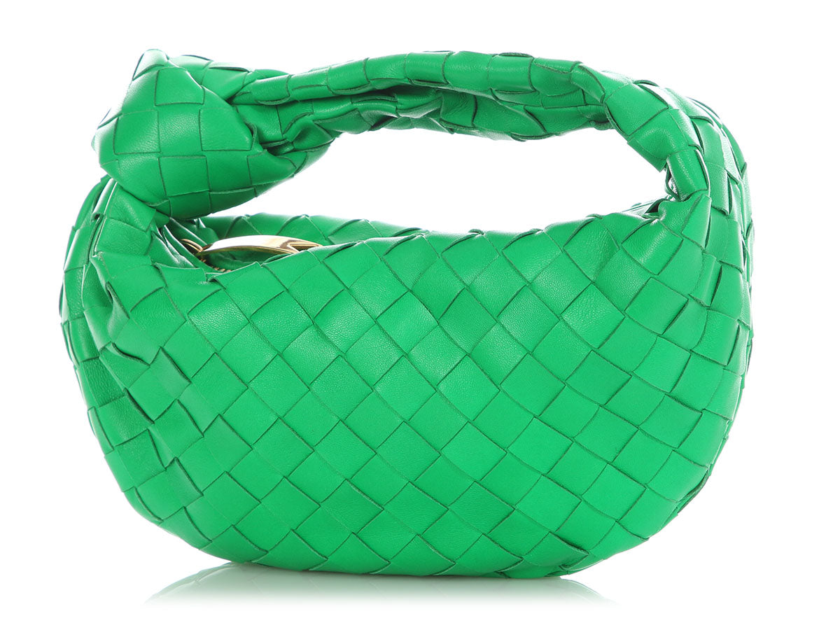 Get your daily dose of greens with Bottega Veneta’s Mini Green Jodie! Crafted from verdant intrecciato woven leather, it features a distinctive knotted handle with a 4-inch drop and gold hardware. The top zips closed and the pocketless interior is lined in matching green leather. In excellent condition, it has a very tiny dark mark on the bottom. This compact cutie is an easy way to add BV charm to any outfit!