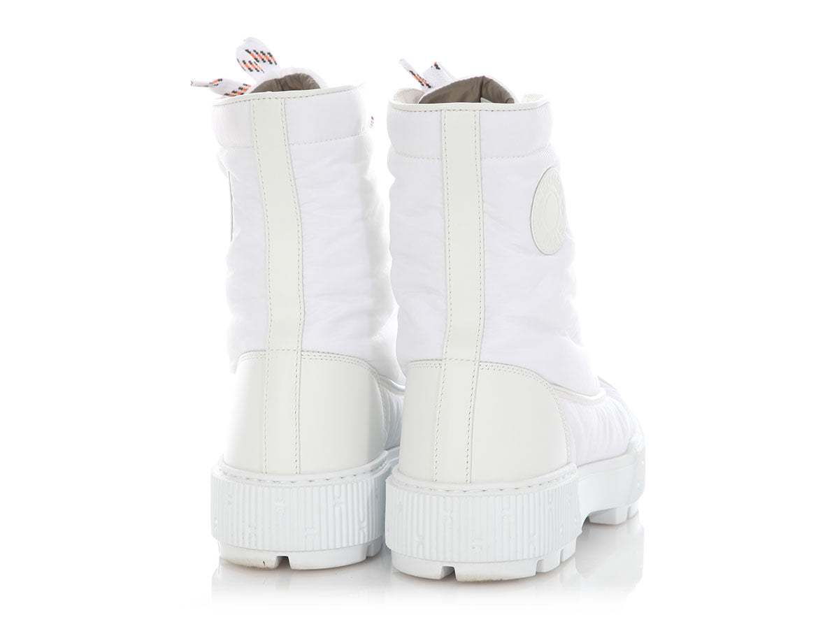 Gear up for the colder weather with Hermès’ White Nylon Fresh Boots! Made of white nylon with white plastic capped toes, they lace up with Hermès-patterned laces. In great condition with a box, two dustbags, and extra laces, they have wear on the soles and a few very faint marks. With fabric inners and white treaded rubber soles, they're a fresh look that’s ready for snow!