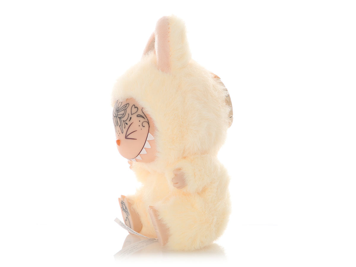 POP MART’s Sisi Have a Seat Tattooed Labubu is a grinning cutie with custom ink from artist Zach Hewitt (@zachkhewitt on Instagram)! The lovely linework and imaginative detailing add personality and a touch of mischief to this charming figure, giving it standout presence in any display. Fans can explore more of Hewitt’s work at wellwishestattoo.com to see the artistry behind his designs. In pristine condition, it comes with its collectible card and opened box. Cute, spirited, and full of character, this one-of-a-kind monster brings joyful creativity to any collection!