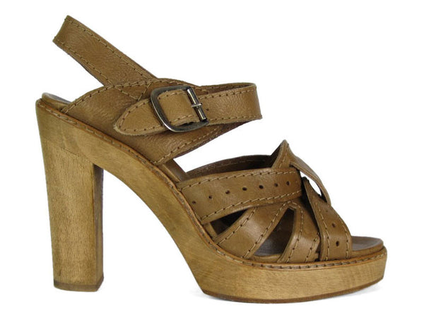 Louboutin Bronze Leather Ankle Wrap Braided Sandals