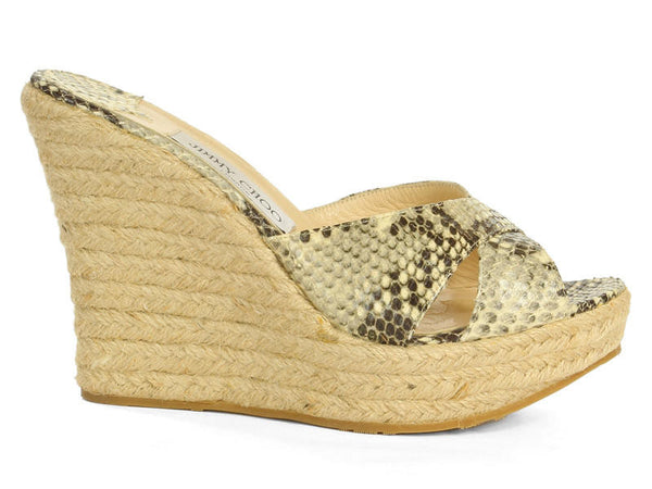 Jimmy Choo Pink Fabric Snakeskin Platform Peep-Toe Pumps