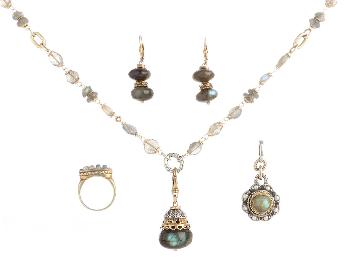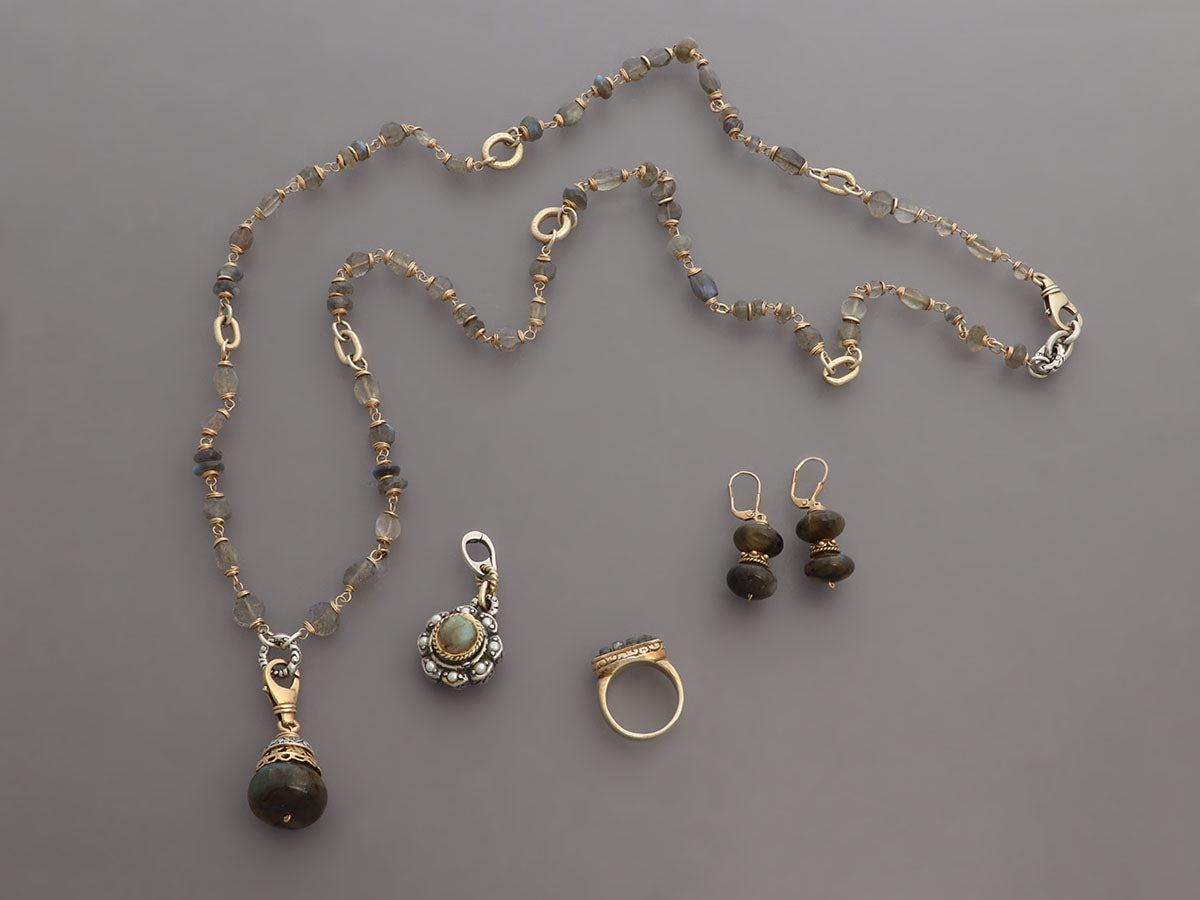 Alana Leigh Gold-Washed Labradorite Pendant Necklace, Ring, and Earrings Set