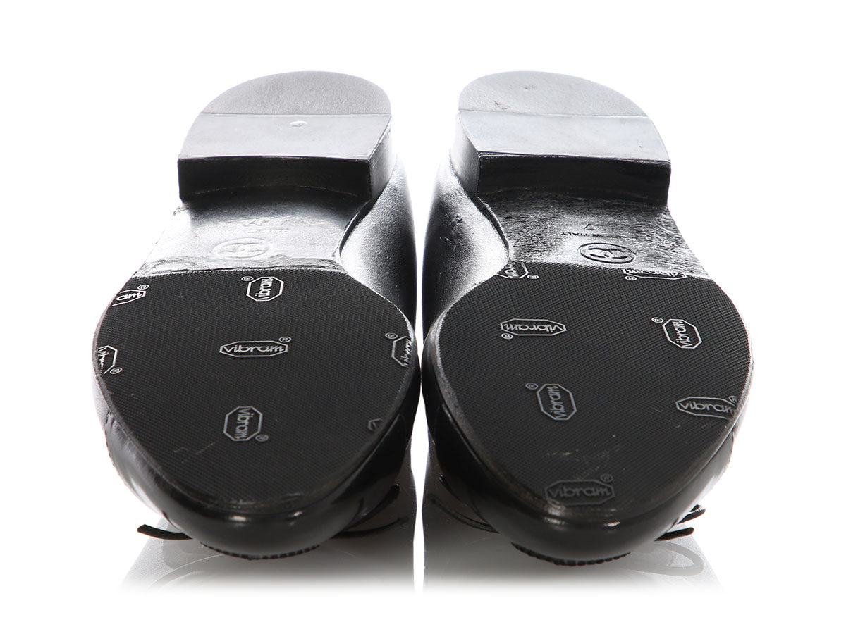 Pairable with pants, jeans, or a skirt, Chanel’s Black Cap Toe Ballerina Flats are super versatile—and super cute! Their mix of materials gives them a bit of interest with smooth black leather meeting shiny black patent at the CC logo-stitched toes. They also have leather inners, 0.5-inch heels, and sweet little bows. In great condition with a box, two dustbags, and info booklet, they have a few faint scratches throughout, a deep scratch on the left toe, and the leather soles have been re-soled with rubber. Just slip them on and see where they’ll take you!