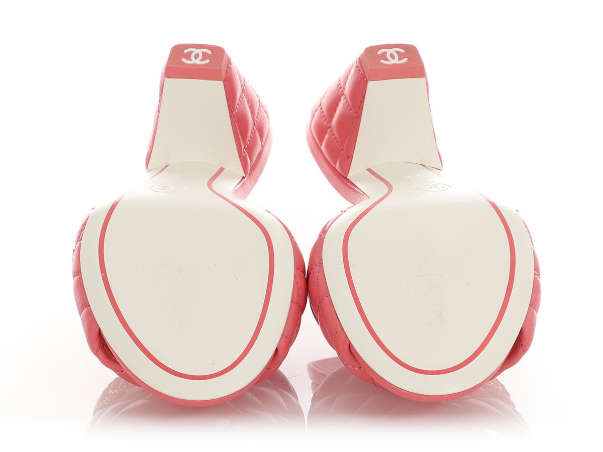 Your toes will be tickled pink with Chanel’s Pink Slide Sandals! Made of quilted pink leather with 2.5-inch heels, the tops have gold CC logos. In excellent condition with a box and two dustbags, they have very light wear on the soles. With leather inners and soles, they’re pretty in pink!