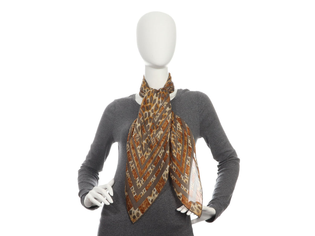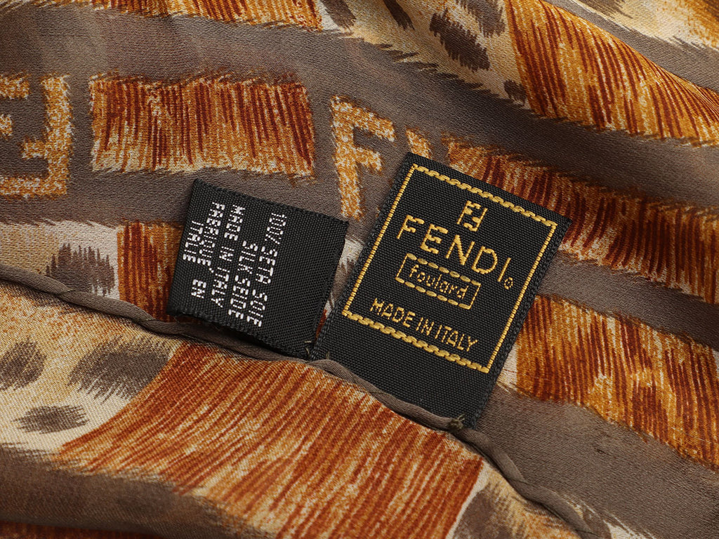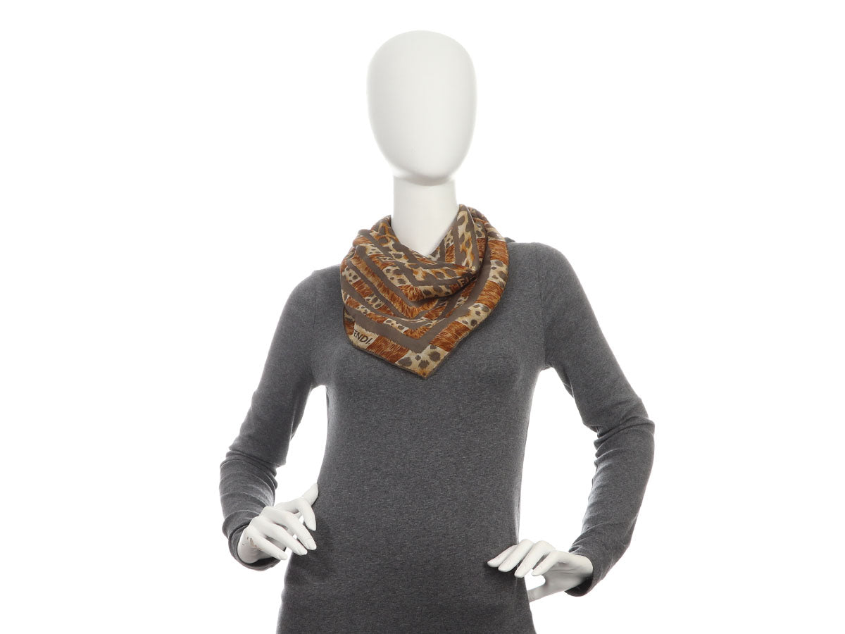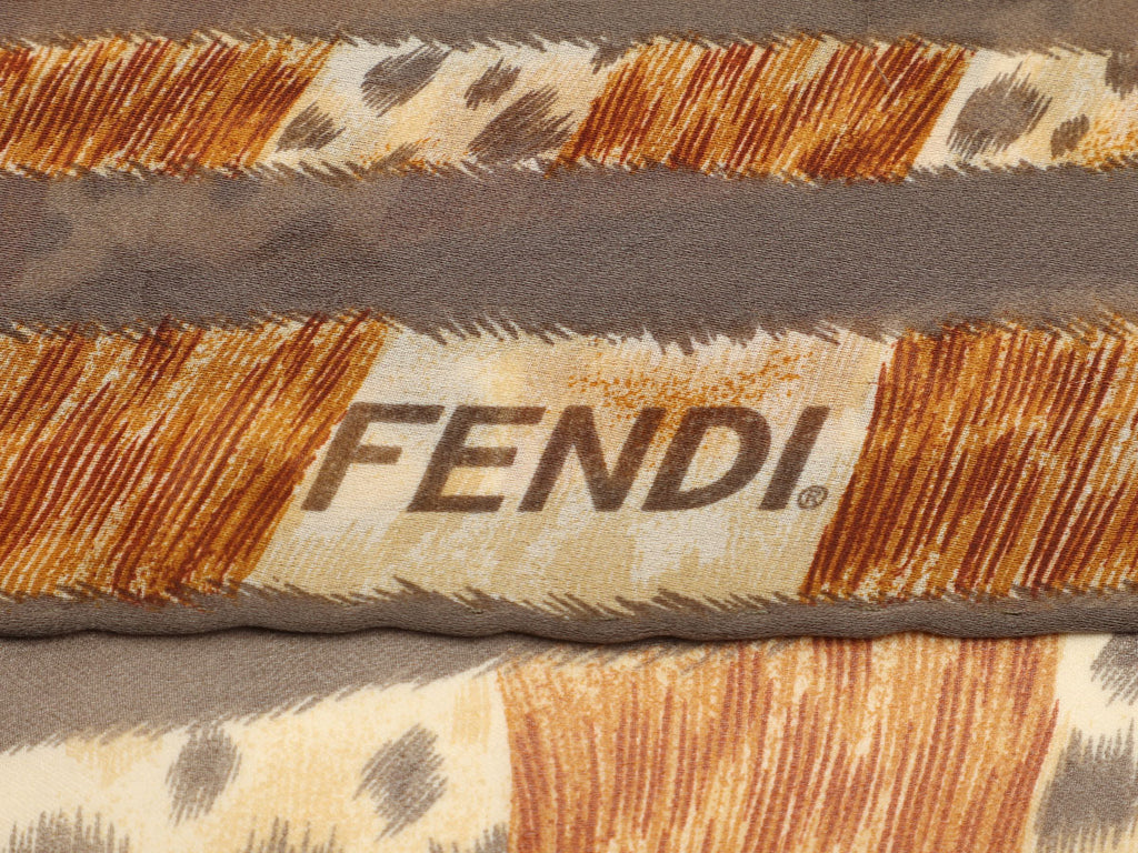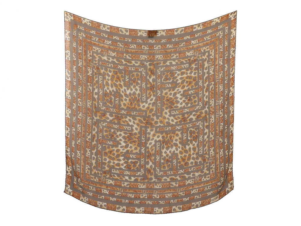 Wrap up in a fierce, fabulous look with Fendi’s FF Cheetah Silk Scarf! With hand-rolled edges, this sheer, lightweight piece is covered in animal print with four pairs of F’s in the middle in shades of brown and gray. It comes in excellent condition and one of the labels is coming off. It’s elegant, it’s exotic, it’s Fendi!