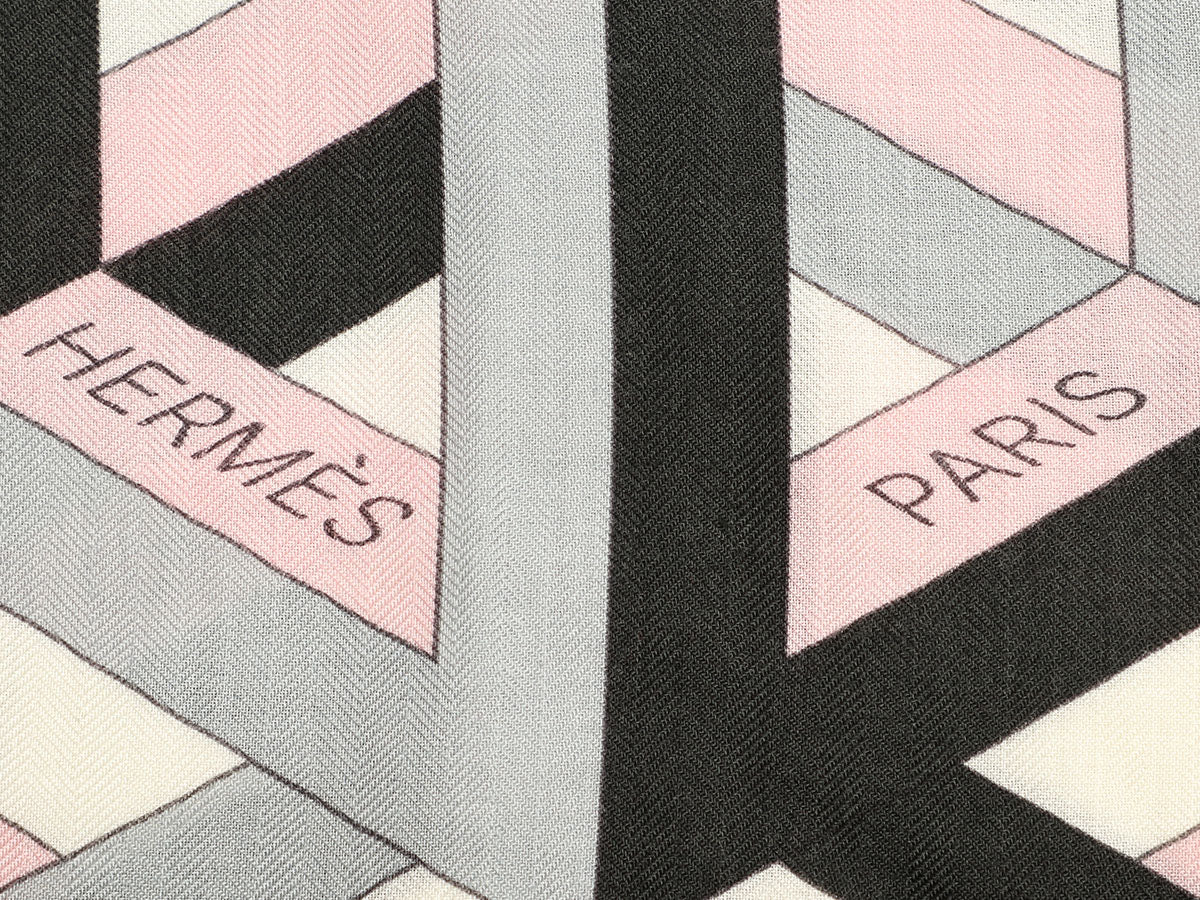 It's easy to get lost in Hermès' Carre Cube Shawl! Made of 65% cashmere and 35% silk in anthracite, blanc, and rose, it showcases a maze-like motif designed by Henri d'Origny. In very good condition with a box and tag, it has some light pilling and a few pulls and sits ready to dress up your look!