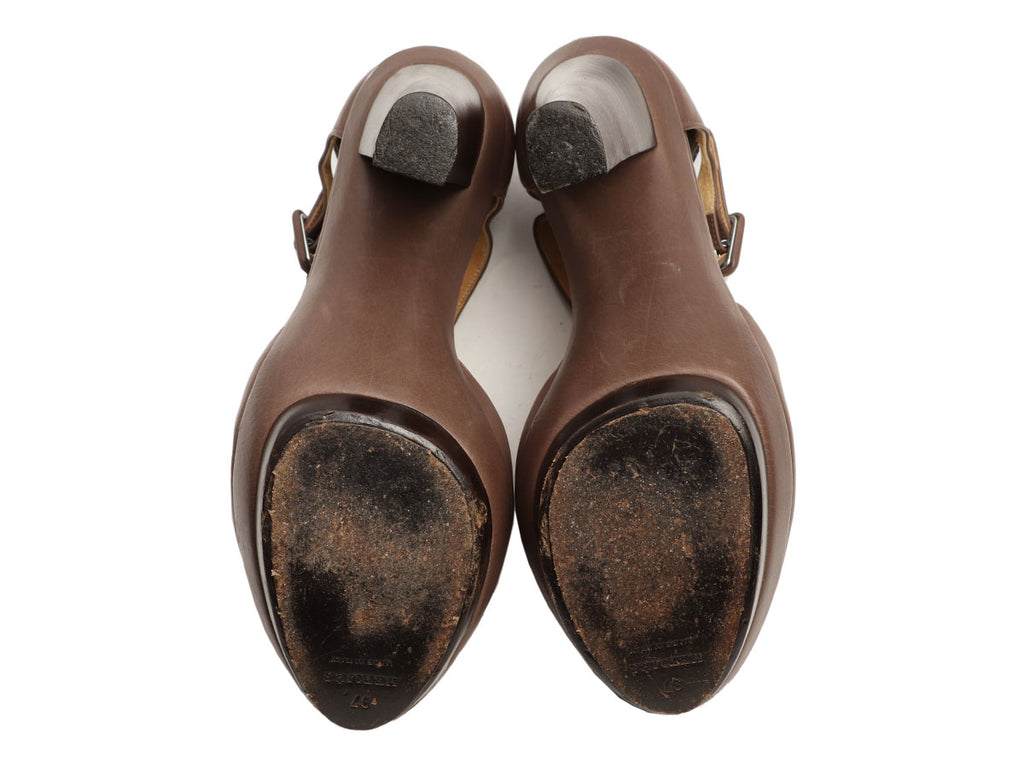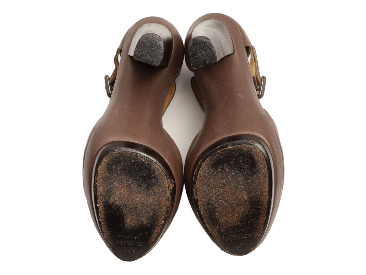 Hermès’ Taupe Ankle Strap Platform Pumps are a standout style in neutral tones! Made of taupe leather with dark brown stacked 4.5-inch heels and 1-inch platforms, they strap and buckle at the ankles. In good condition, they have some wear on the soles, scratches on the leather and some rubbing, scuffing, and scratches on the edges toward the bottoms. With leather inners and soles, they add polish to a polished look!