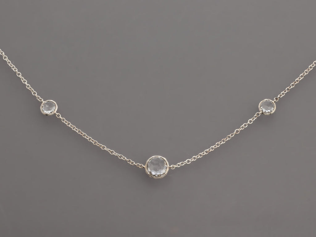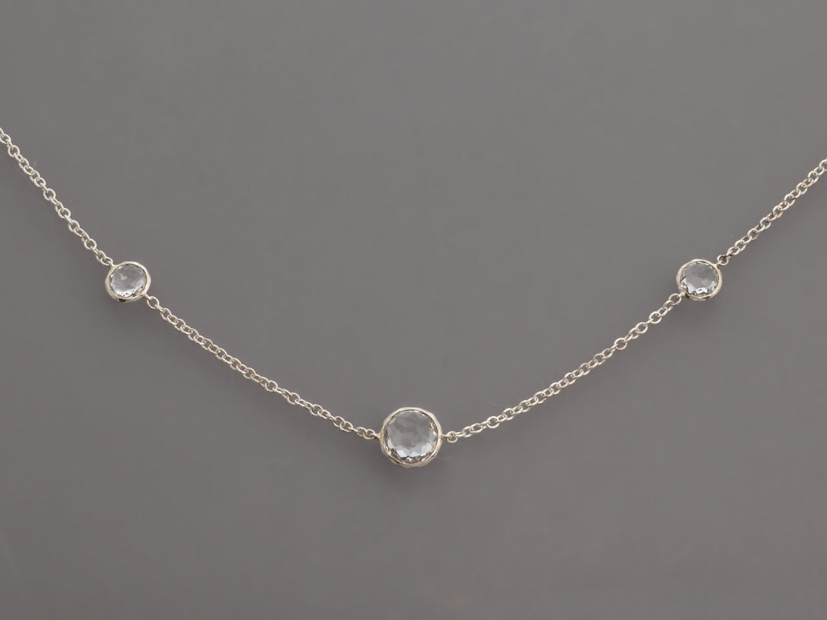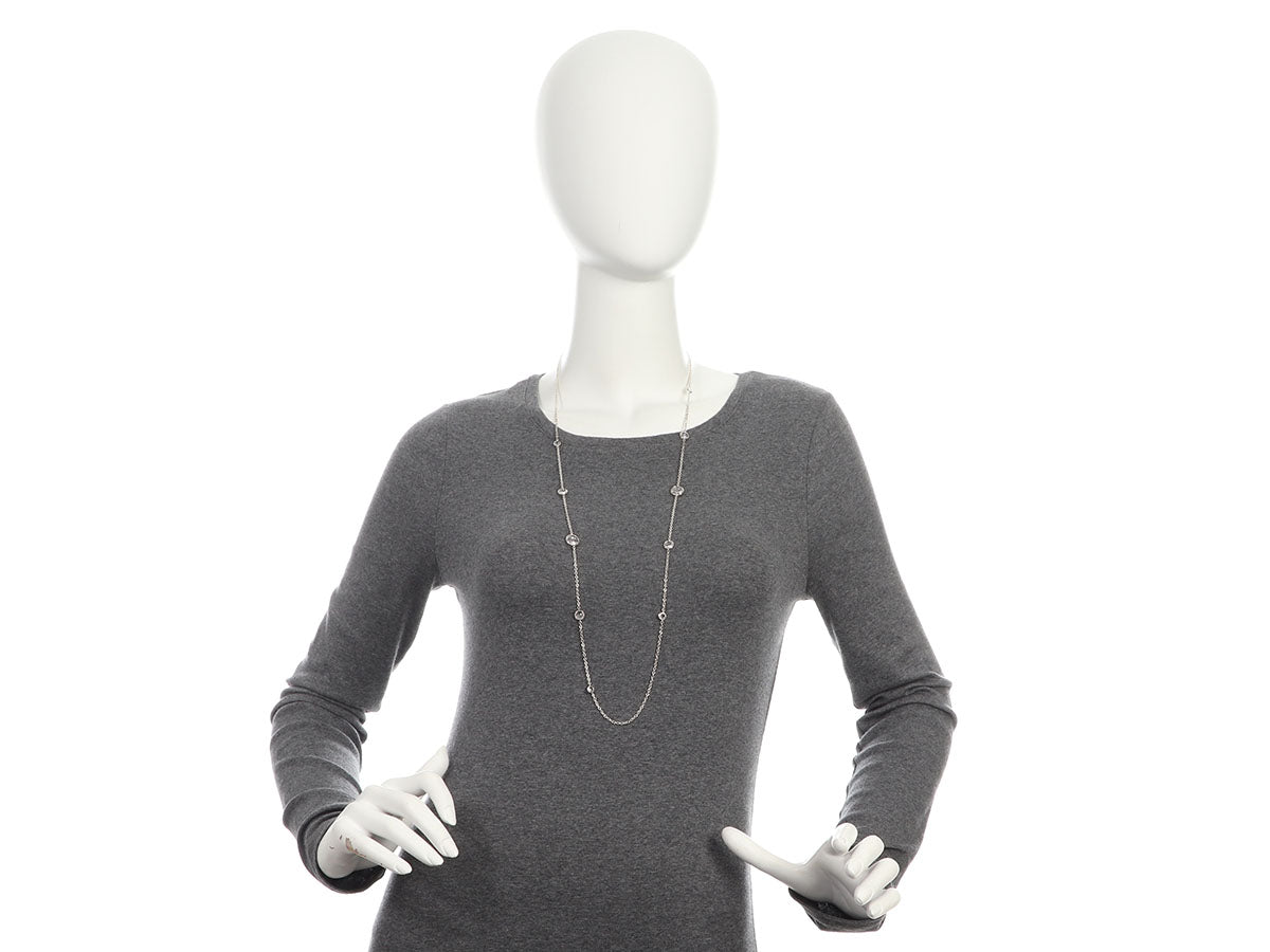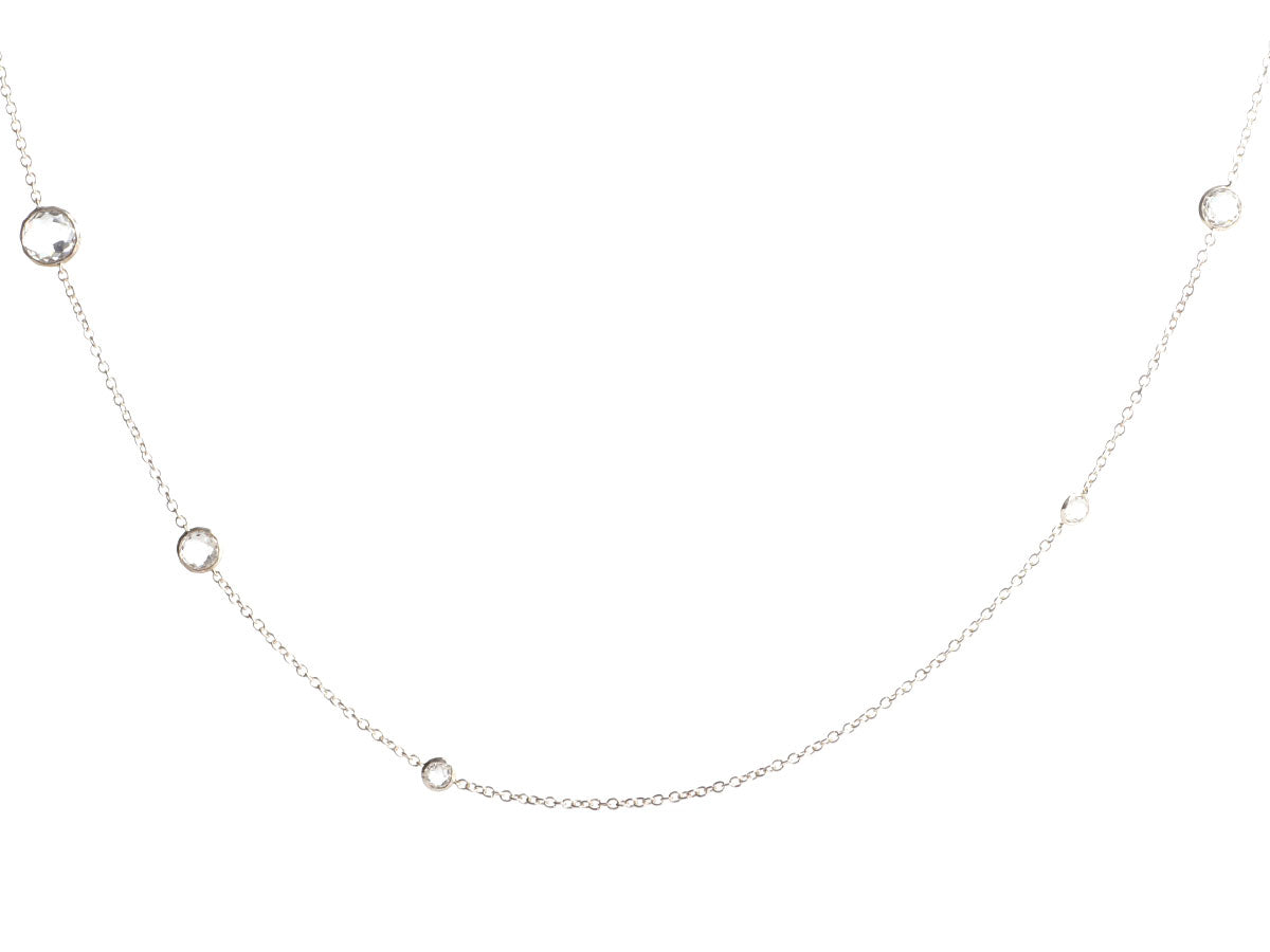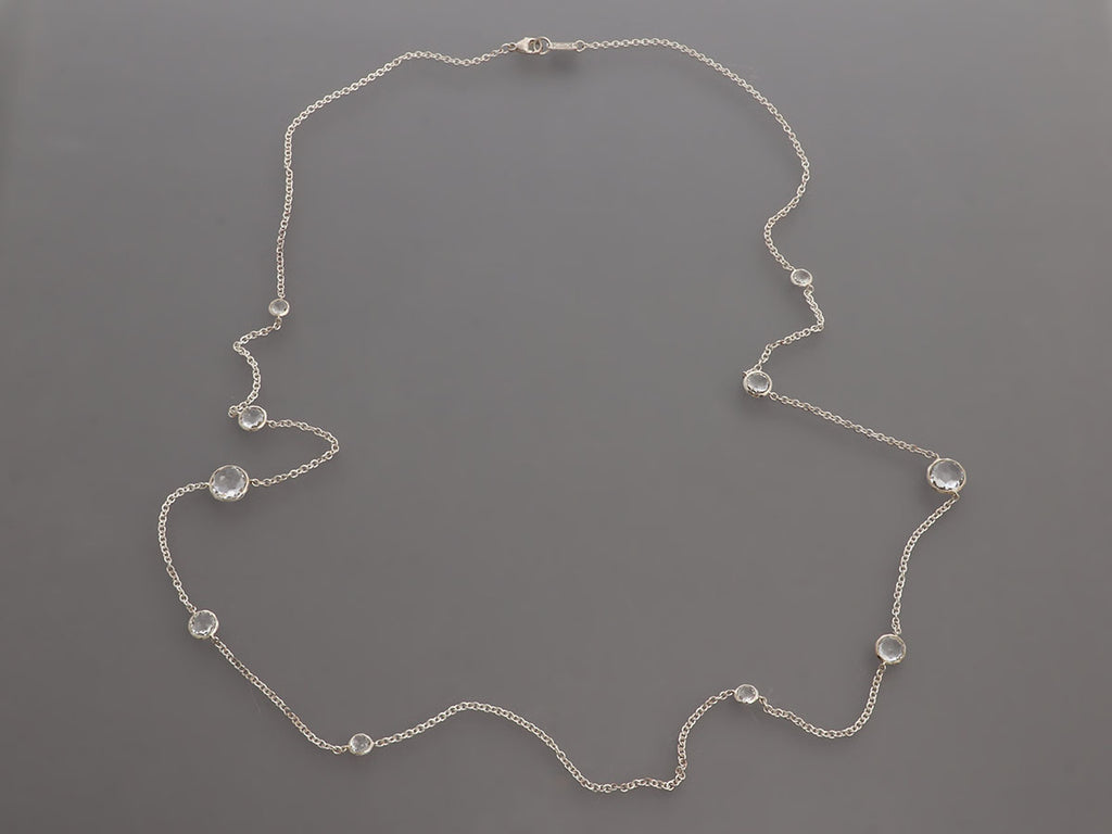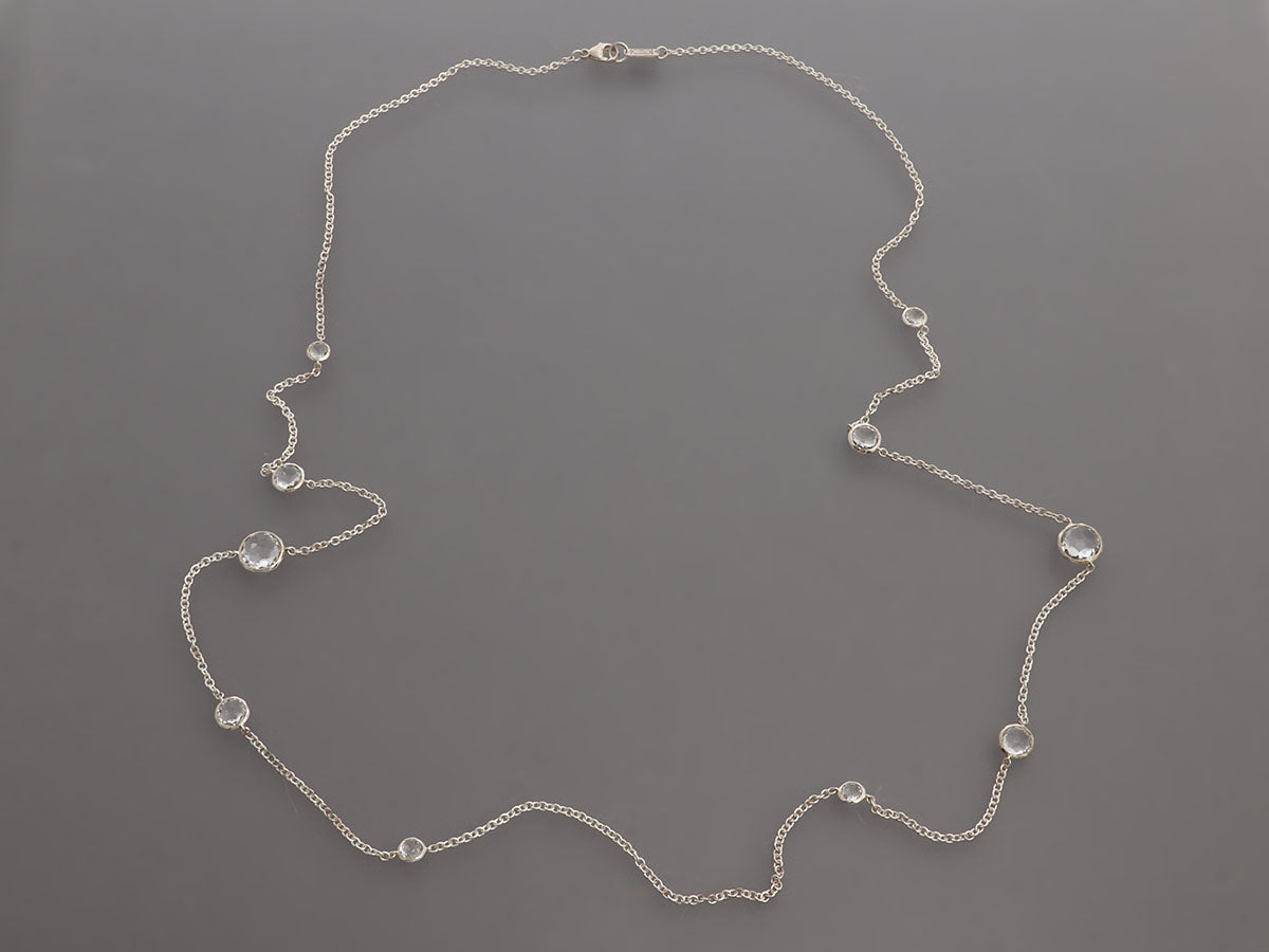 Ippolita’s Long Sterling Silver Necklace has 10 stations of bezel-set rock crystal in various sizes! They are linked together on a fine chain that secures with a lobster clasp. In very good condition, it is gently worn. Its 36-inch length hits just above the waist on most and qualifies it as opera length, offering a significant drape that elongates your look!