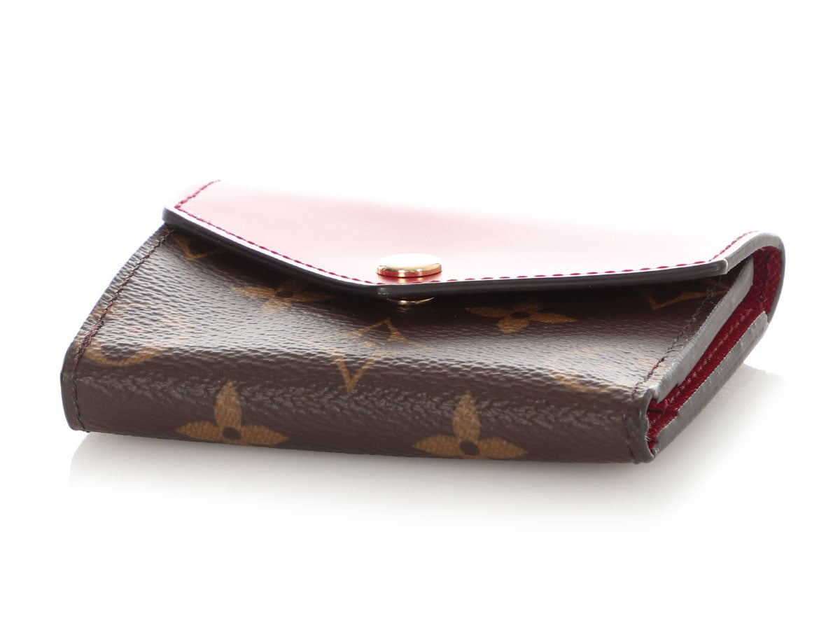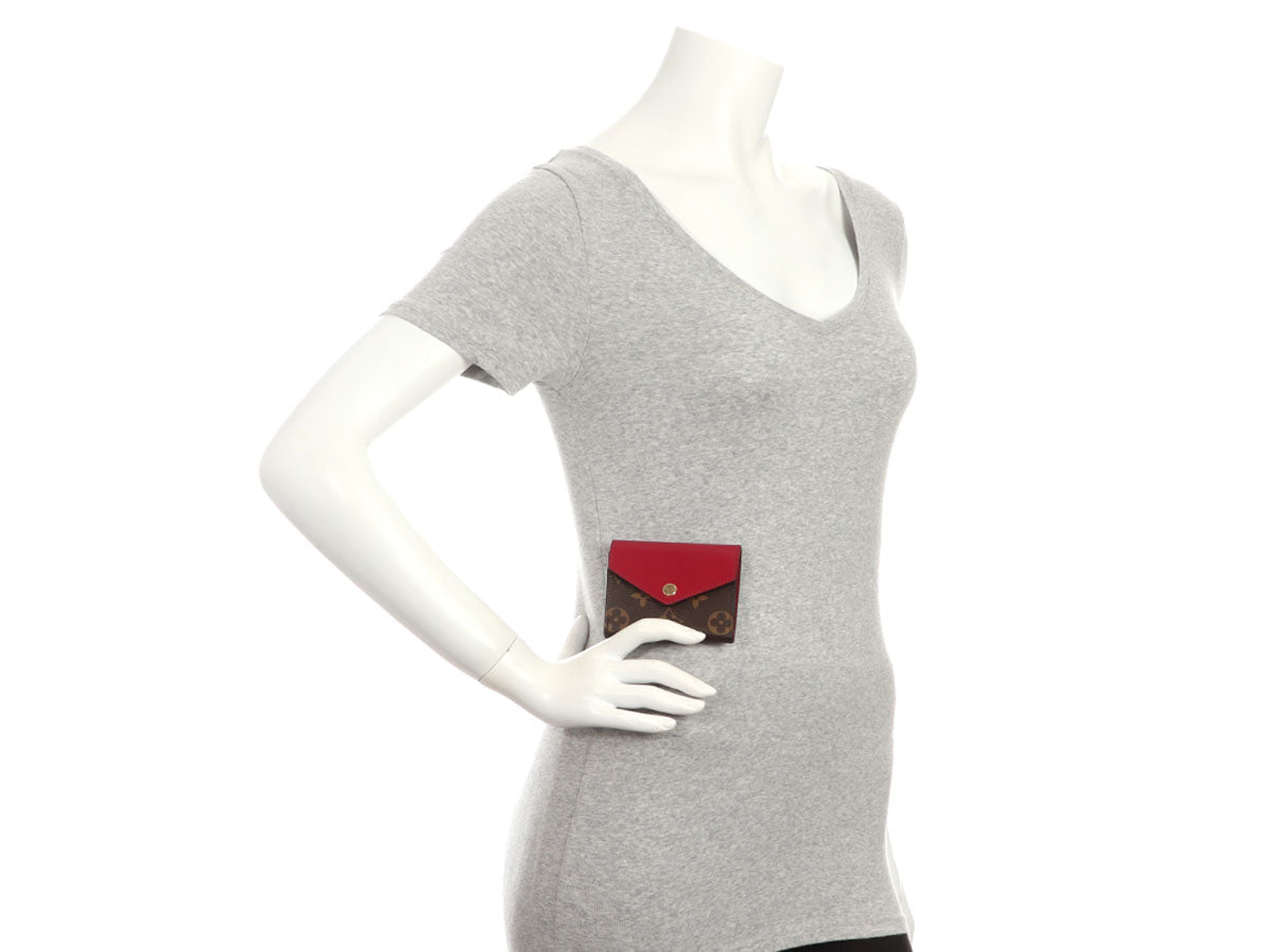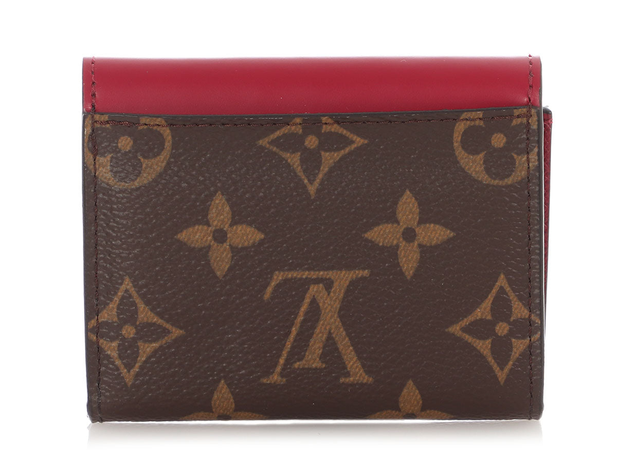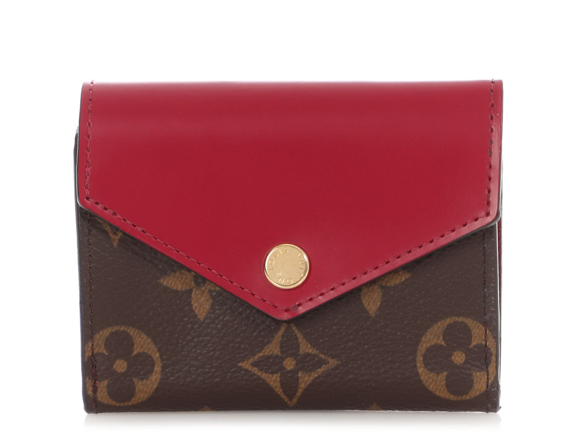 Louis Vuitton’s Red and Monogram Zoe Wallet is a petite piece with big LV style! It's made of a combo of brown coated canvas and berry red smooth leather with a slide pocket on the back, and the flap unsnaps to open to grained red leather inside with a billfold, zipped pocket, two slide pockets, and two card slots inside. In very good condition with a box and dustbag, the edges of the back pocket are curled and there are some scratches on the gold hardware. Tuck it in your bag or let it speak for itself!