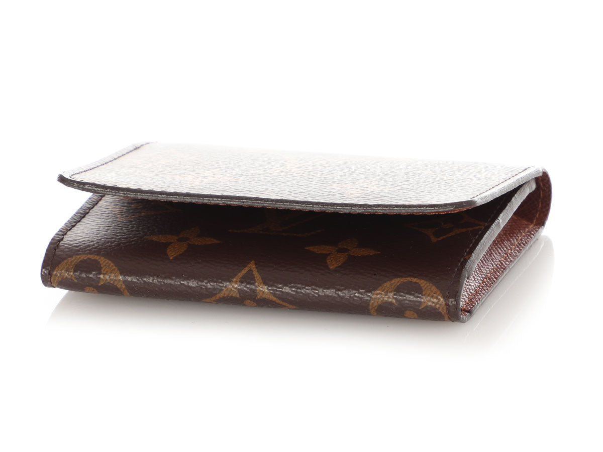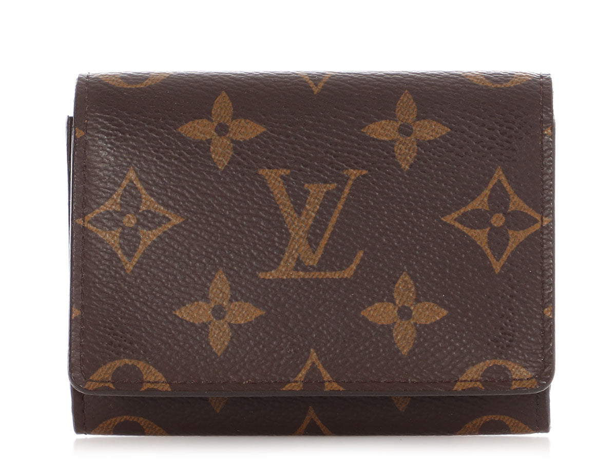 Louis Vuitton’s Monogram Card Holder is chic in its simplicity! Made of brown coated canvas, it flaps closed like an envelope, and the pocketless interior is lined in brown grained leather. In great condition with a dustbag, it has scuffs along the edges and a few scratches inside. It’s a unisex piece that slips easily into a pocket or purse!