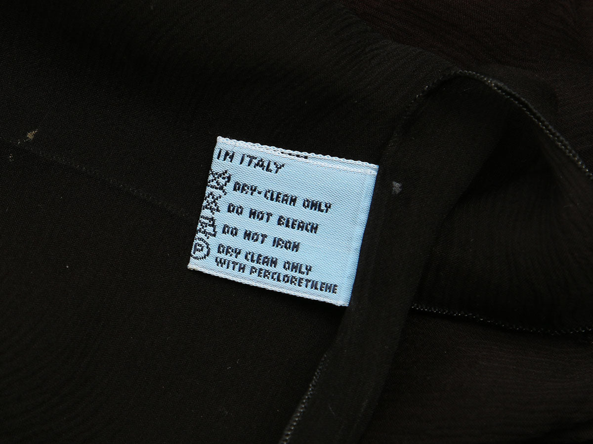 Prada’s Brown Silk Chiffon Scarf makes a statement of simple elegance! Made of brown sheer 100% silk chiffon with a very subtle stripe design, it has an embroidered black logo at one corner. In good condition, it has a few tiny holes toward the edges, some small stains, and a few tiny runs. It will add sheer perfection to your look!