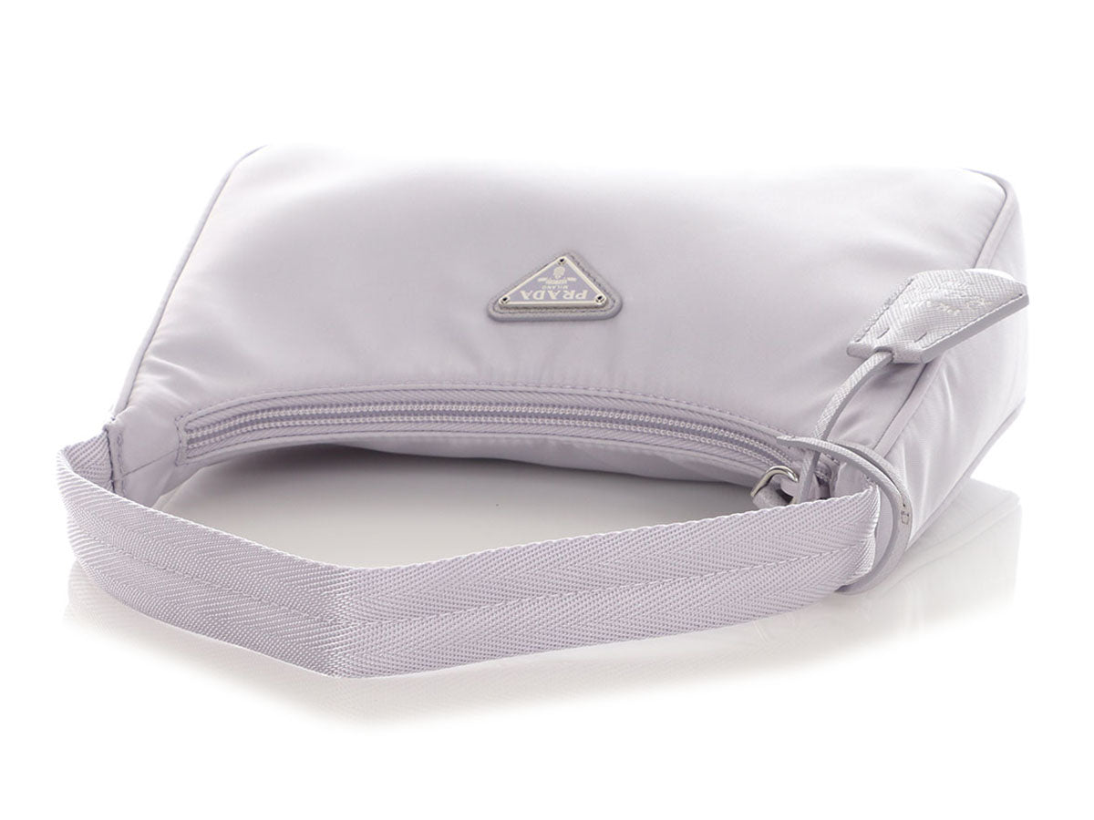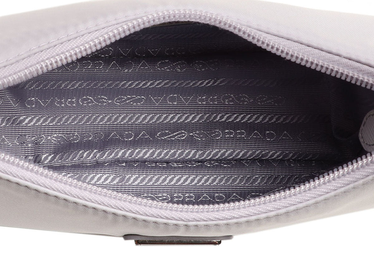 Prada’s Wisteria Re-Nylon Re-Edition 2000 is a cool blend of nostalgia and sustainability! Crafted from pale purple recycled nylon with silver hardware, this petite bag features a triangular logo plate on the front and a tonal webbing strap with a 6.5-inch drop. Unzip the top and you’ll find a pocketless interior lined in purple jacquard fabric. Brand new with a dustbag, box, and clochette, this Re-Edition is really fabulous in this dreamy shade of purple!